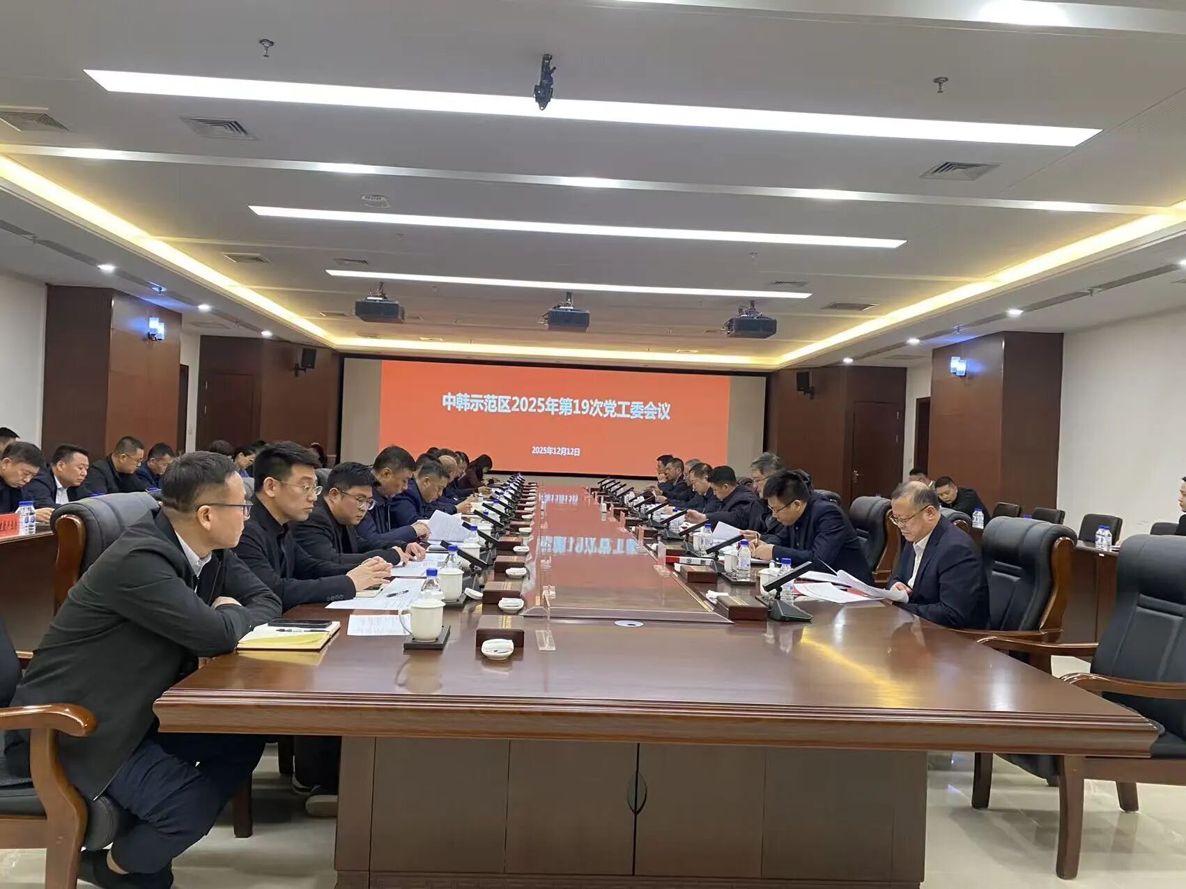 12月12日,中韩示范区党工委书记刘乃军主持召开2025年第19次党工委会议。